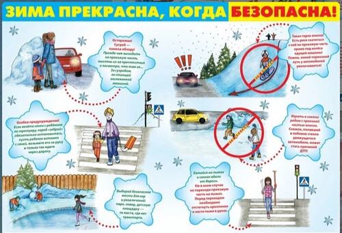 Дорогу необходимо переходить в специально установленных местах по пешеходному переходу. На проезжую часть выходите только после того, как убедитесь в отсутствии приближающегося транспорта и слева и справа.