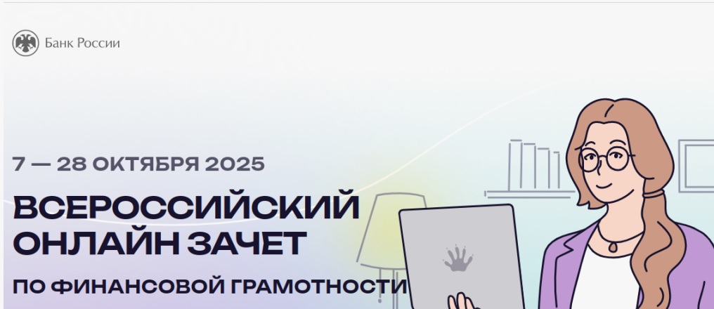 С 7 по 28 октября 2025 года будет проводиться VIII Всероссийский онлайн-зачете по финансовой грамотности (далее – Зачет), зачет можно пройти по ссылке https://finzachet.ru/. Зачет можно пройти индивидуально или совместно с членами семьи. Задания подготовлены на основе конкретных жизненных ситуаций и помогают научиться принимать рациональные финансовые решения. Обучающиеся младших классов общеобразовательных организаций смогут пройти задания в интерактивном формате в Семейном зачёте с 8 октября по 29 октября 2025 года, а школьники 7-11 классов с 15 по 17 октября 2025 года могут принять участие в Олимпиадном зачете, успешное завершение которого позволит выйти в финал Всероссийской олимпиады «Высшая проба» и получить льготы при поступлении в высшие учебные заведения. | |
